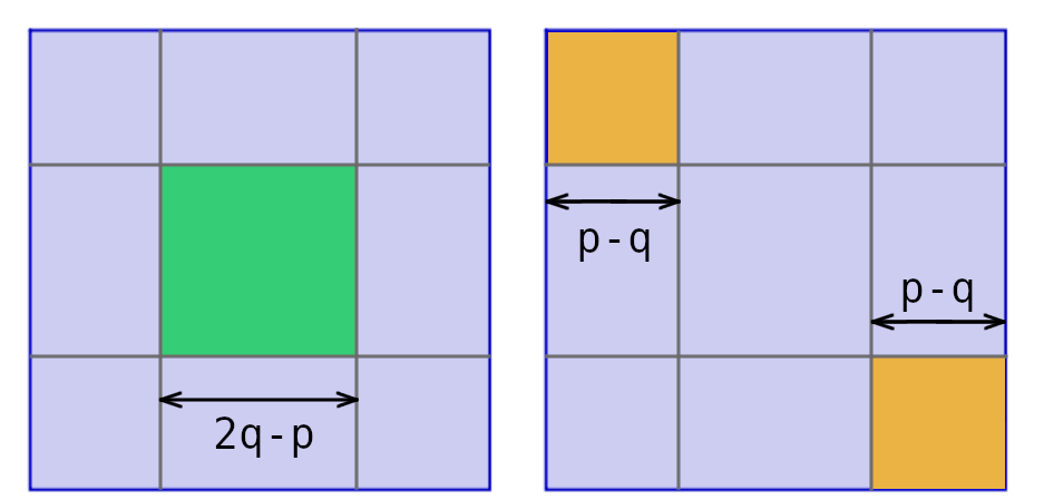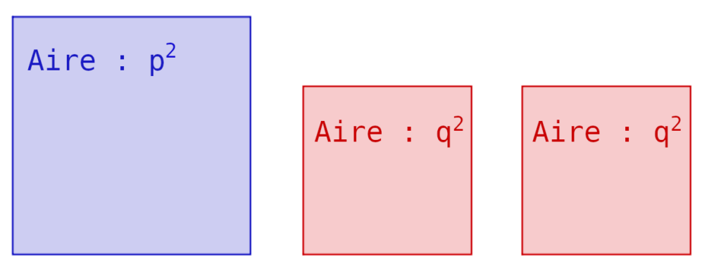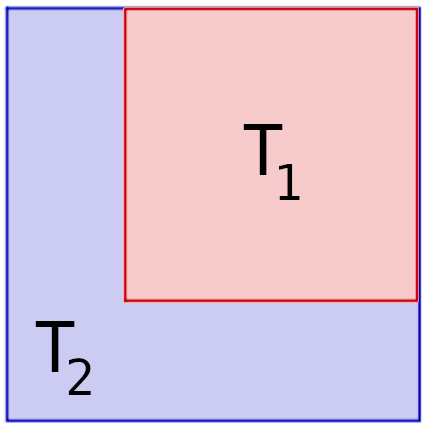 Décomposons le carré bleu en deux sous-domaines, de deux manières :
