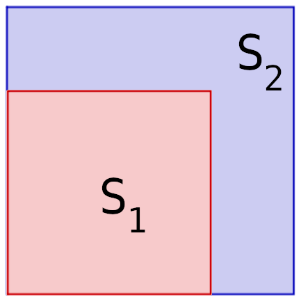 du plan s’écrive de deux manières comme l’union quasi-disjointe de deux sous-domaines (ceci signifie que l’intersection est supposée d’aire nulle; l’aire de l’union est donc égale à la somme des aires) :