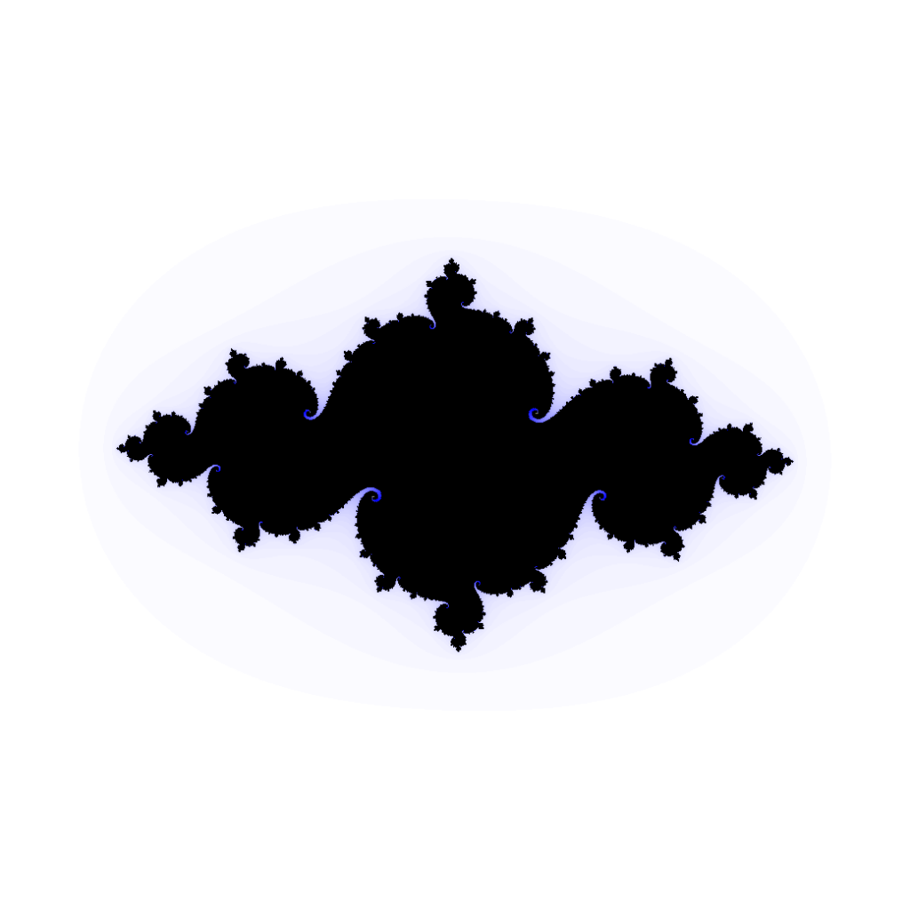 possède une structure infiniment plus riche et plus difficile à décrire … Lorsqu’on zoome sur sa frontière, on voit essentiellement le même paysage, peu importe l’échelle : pour cette raison, on parle d’ensemble « fractal ».