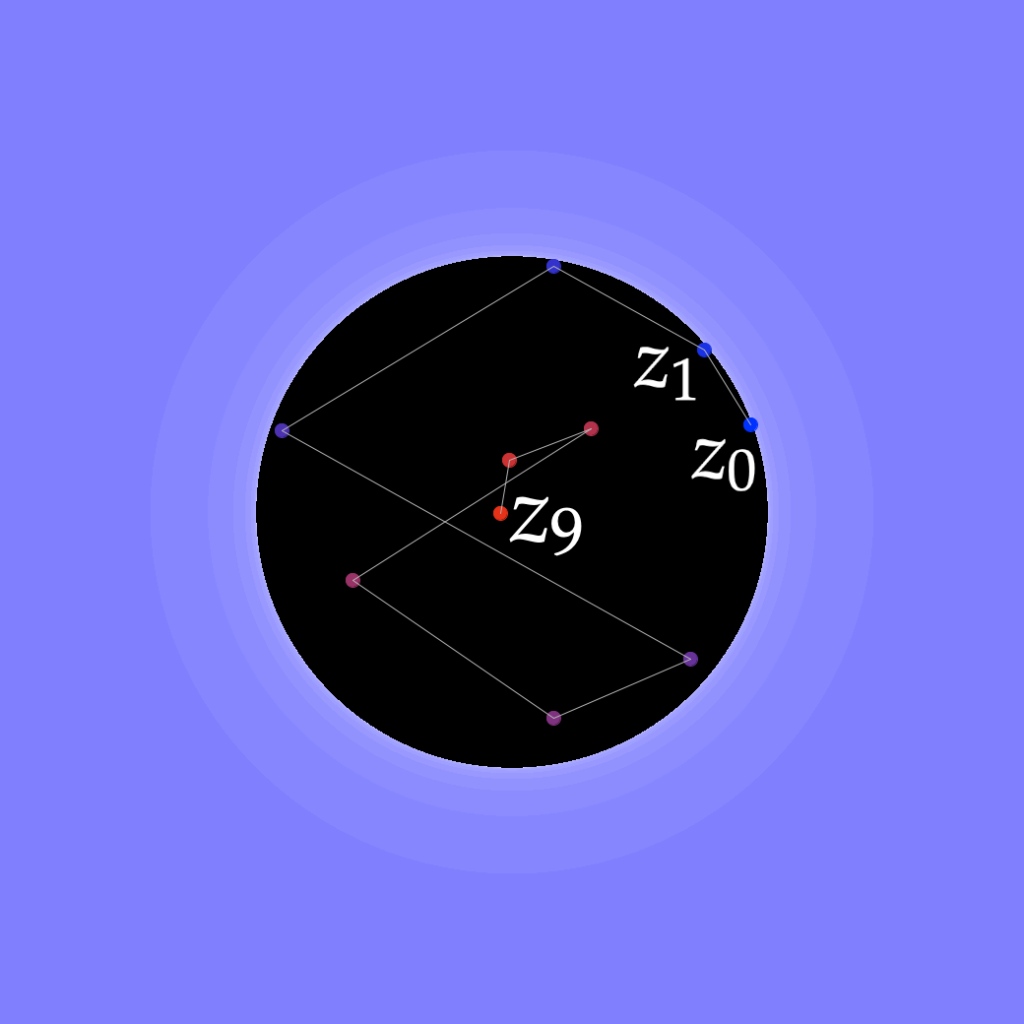 A chaque étape de l’itération, le module est élevé au carré et l’argument est doublé.